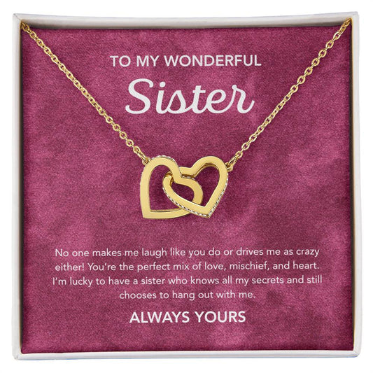 To my Sister - Interlocking Hearts Necklace - Velvet Pattern
