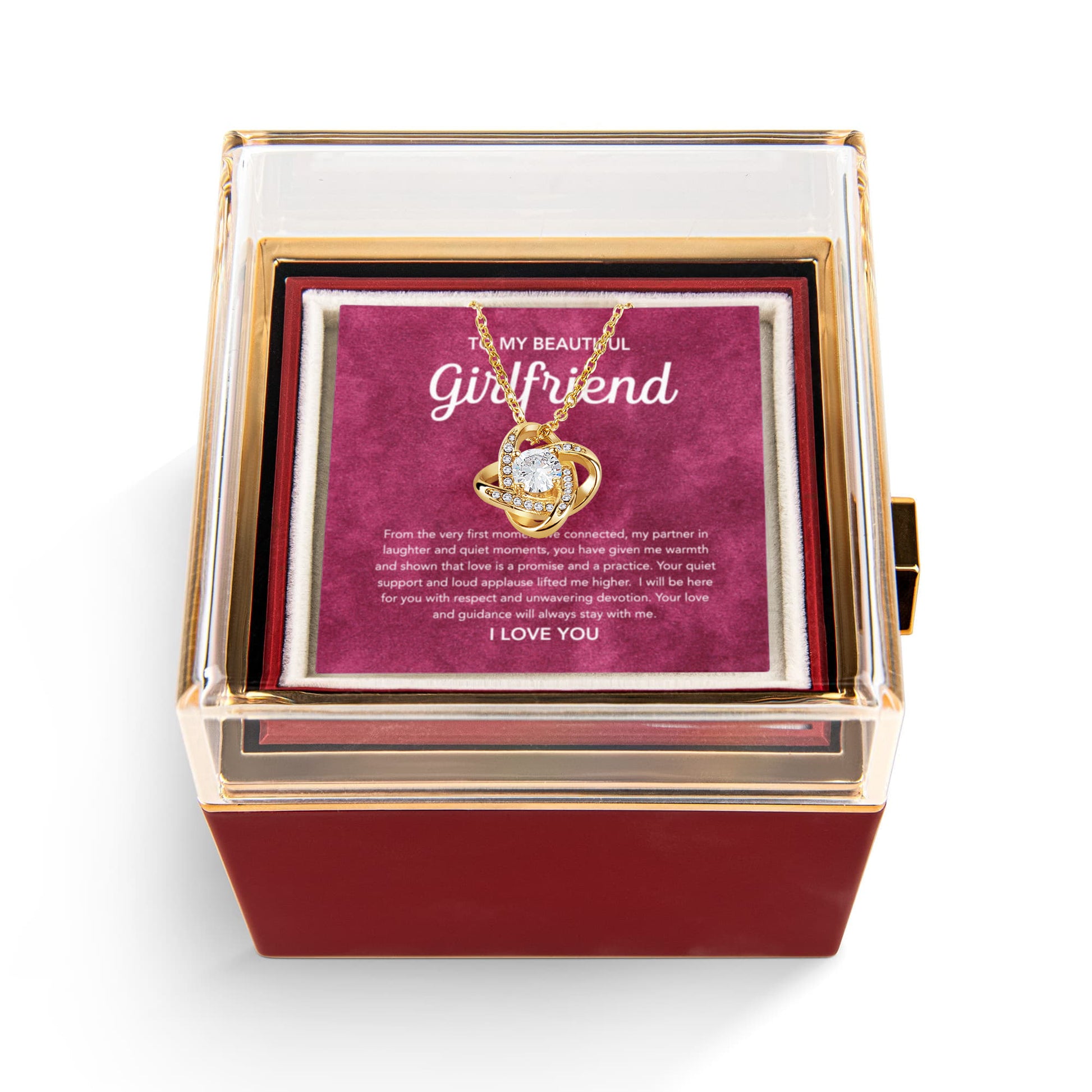 To My Girlfriend - Love Knot Necklace - Velvet Pattern - Rotating Rose Gift Box