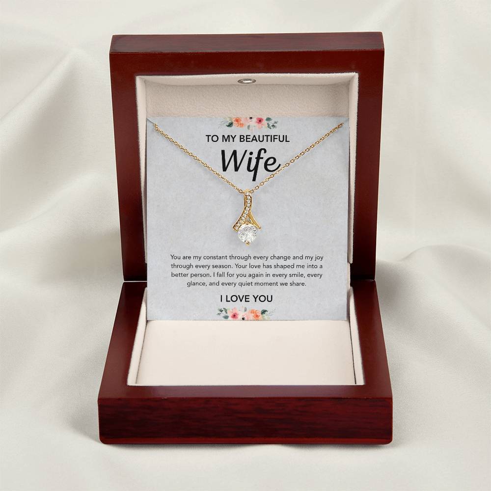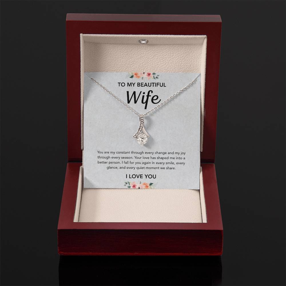 Show her your love still sparkles as brightly as day one. The Alluring Beauty necklace elegant, radiant, and endlessly romantic. A timeless reminder she’s your one and only.